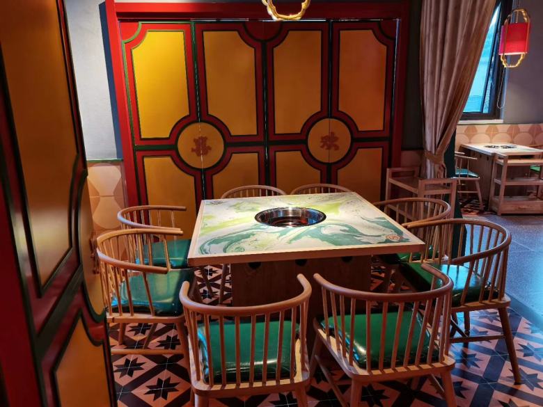 為曲江歡喜記火鍋店定做的火鍋桌椅,與其店面裝修環境融為一體,帶給人一種特別溫馨的感覺,瞬間就能帶給客戶一種翱翔在草原上的氣息。