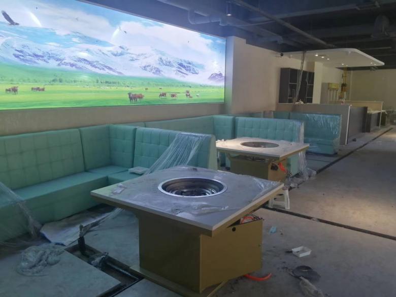西安潮牛道大理石火鍋桌及卡座定做完成