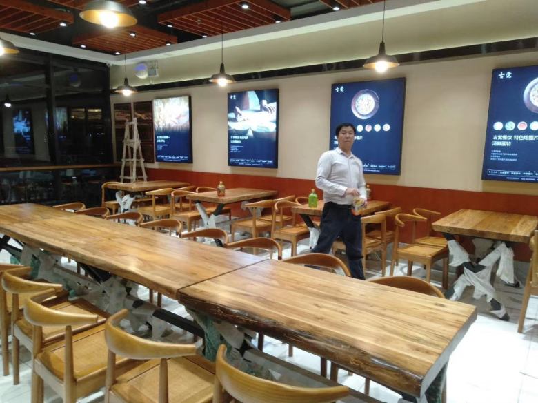 西安古覺面片餐館定制實木餐桌椅家具工程