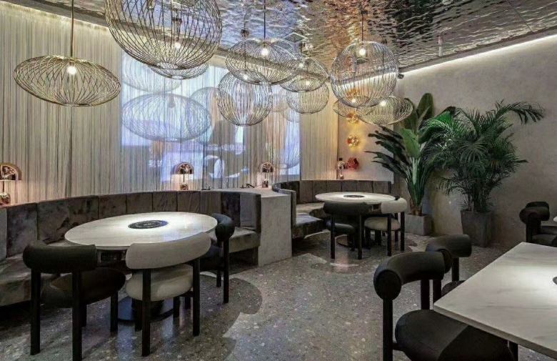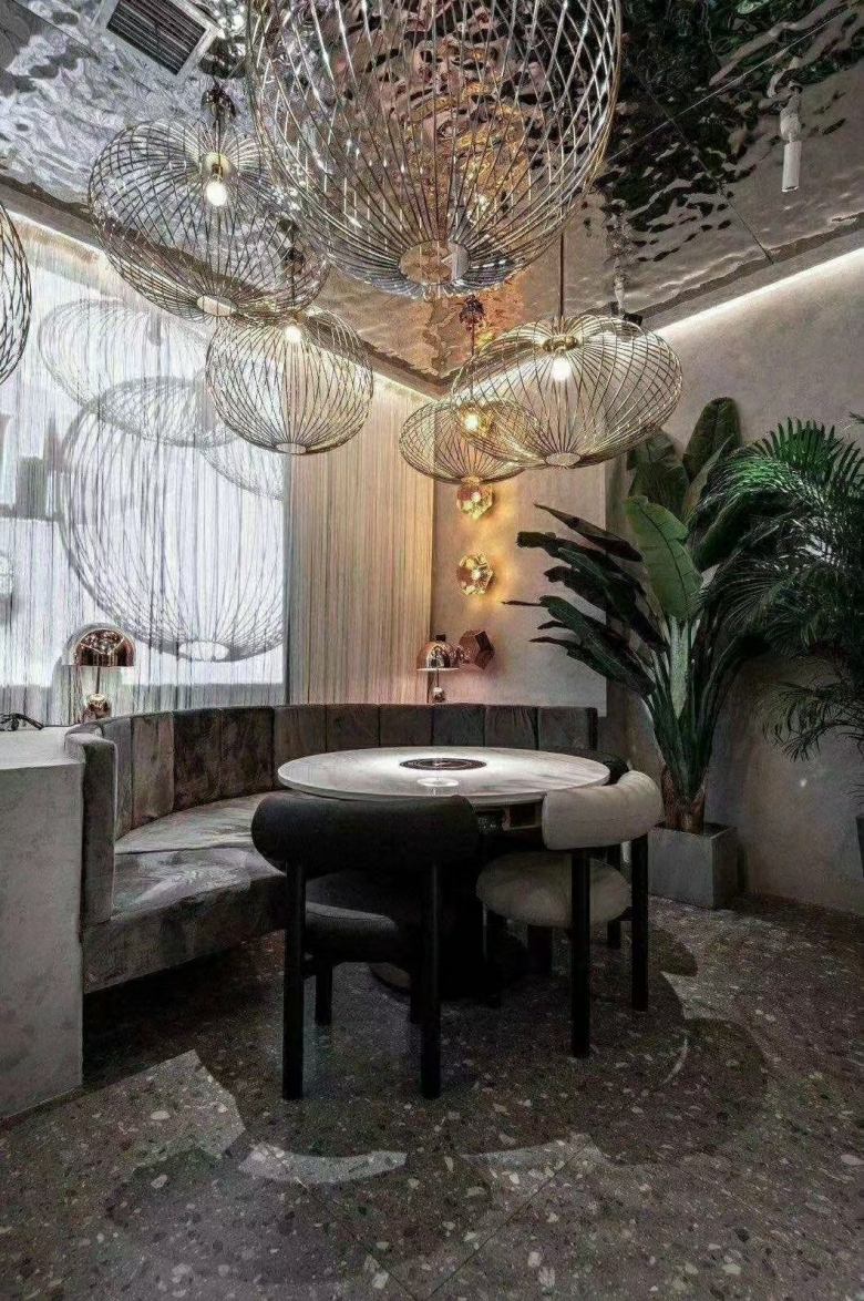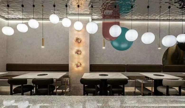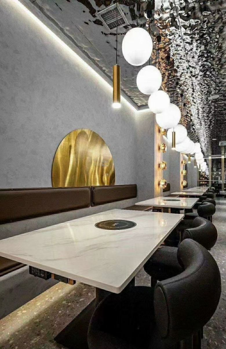 除了在裝修上重金打造外,火鍋桌家具上投資人也是格外大方。所有火鍋桌均選用高檔的巖板臺面,質感大氣,彰顯非凡。餐椅采用星級酒店布藝沙發椅,超級舒適;卡座沙發使用國內領先的優質皮革和布料,結合實木框架,拼接出完美的卡座沙發。