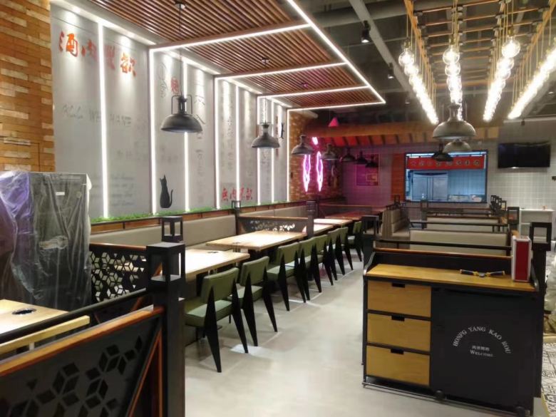 西安鴻洋烤肉餐桌餐椅卡座沙發家具案例