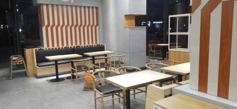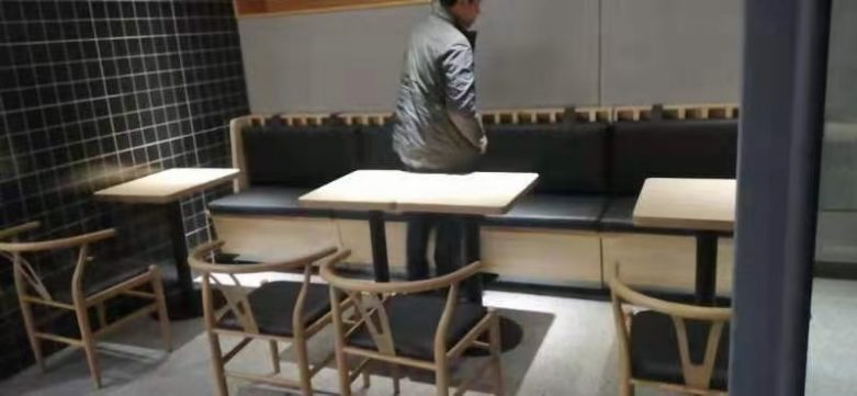 袁記肉夾饃餐廳餐桌椅及卡座沙發(fā)采用黑色皮革軟包,與整店裝修風(fēng)格形成很好的結(jié)合,給食客營(yíng)造出一種獨(dú)特的古香古韻的環(huán)境!在安裝現(xiàn)場(chǎng),博菲克家具廠(chǎng)工人仔細(xì)按照?qǐng)D紙組裝和擺放,另外一組認(rèn)真把安裝好的餐桌椅排列整齊,使得整個(gè)餐廳頓時(shí)煥然一新!