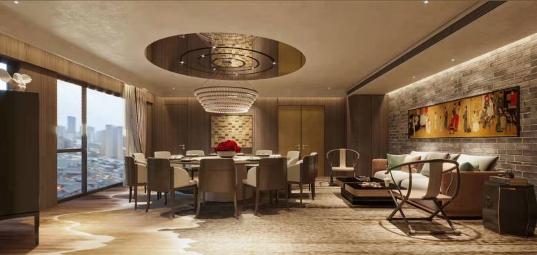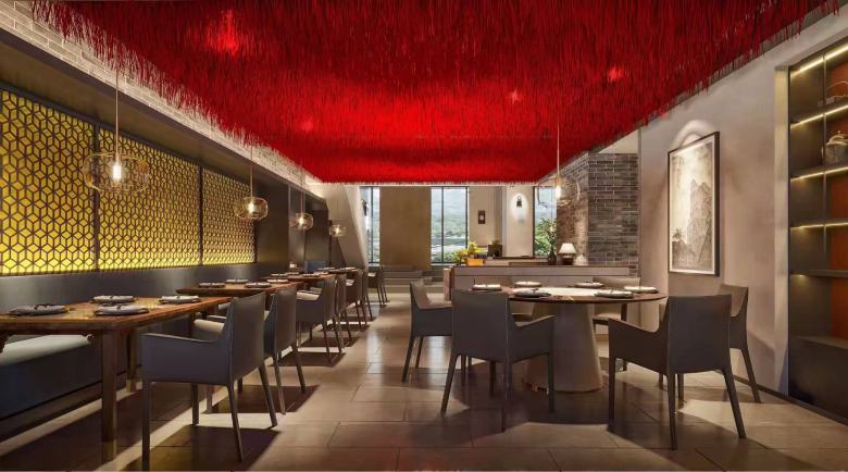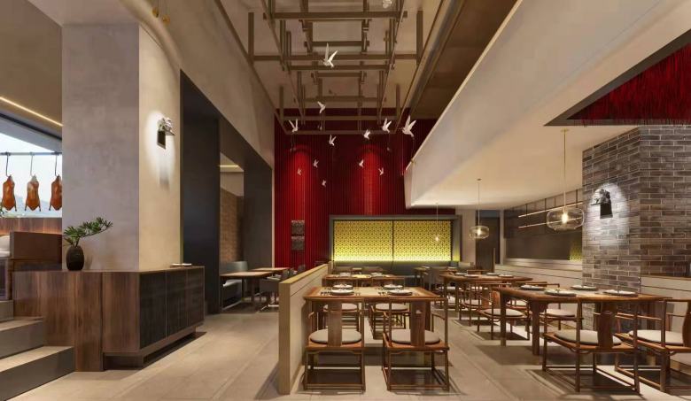 京緣·長安古法果木烤鴨餐廳項目地址位于西安雁塔西路美居酒店樓下,從客戶提供的效果圖可以直觀的看出,這是一家非常有品位的餐廳。