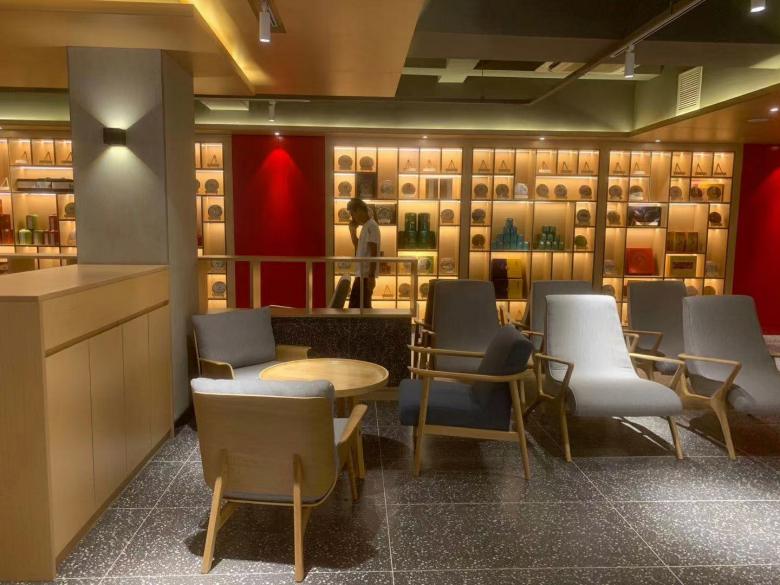 按照裝修公司提供的平面圖和裝修效果圖,我廠為高端茶品牌引領者西安大益茶茶館聚力打造的定制家具全部完工。