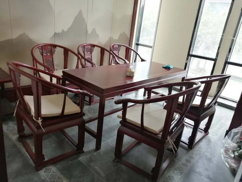 本工程是由我廠為西安某高端茶樓定制的整體家具,風格大氣,古樸典雅。通過西安酒店家具廠家博菲克木工師傅們嫻熟的精雕細琢,一件件定制家具就像“藝術品”般完美的交付給客戶,令在場的所有人為之著迷,是休閑聚會、洽談生意、接待貴賓的好去處!