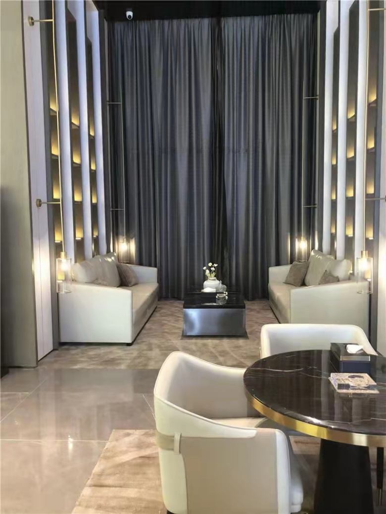 西安高新某售樓部桌椅展柜沙發定制完工
