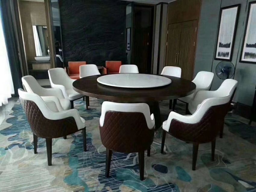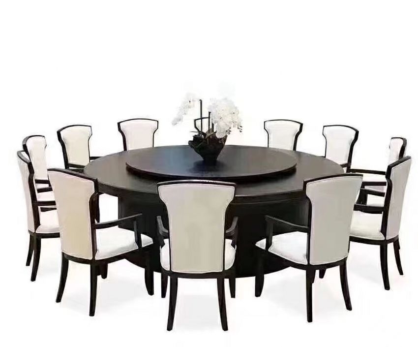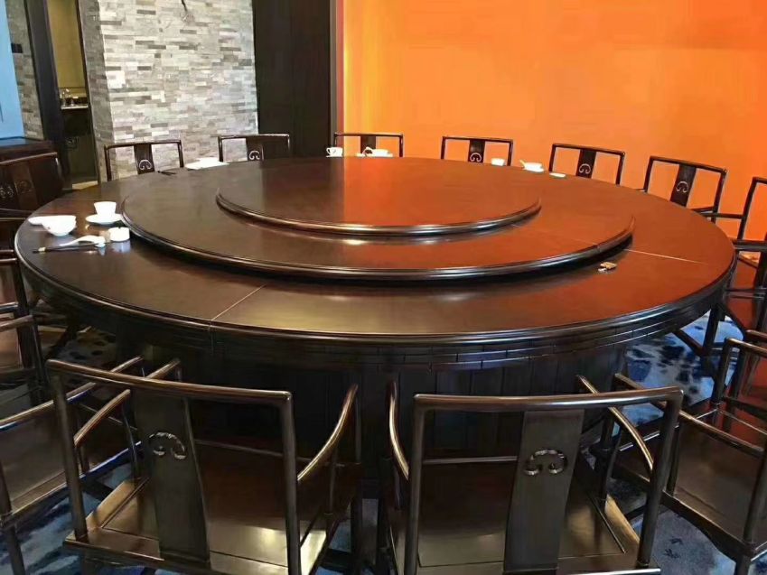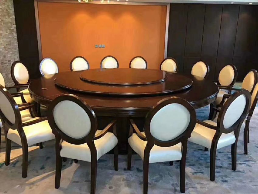 西安實木帶轉盤電動大圓桌餐桌椅