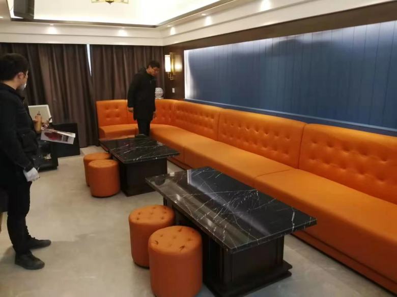 經過溝通后,設計師明白了客戶的需求,客房的裝修以中式風格為主,酒店家具也以新中式設計為主,包括酒店床、酒店沙發、酒店辦公桌椅、酒店包廂餐桌椅。另外,該民宿酒店還配備了KTV,因此,也需要定做KTV沙發和茶幾。
